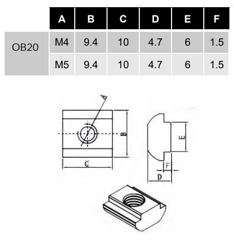 ГАЙКА SLOVED KENNEL M5 T6 ПРОФИЛЬ 20Х20