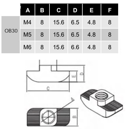 ГАЙКА МОЛОТКА SLOVED M6 T8 ПРОФИЛЬ 30X30