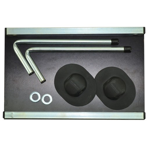 Dwa wsporniki są wsuwane długą częścią przez otwory w metalowej krawędzi stołu, a krótka część jest wkładana do podstaw PVC. Są one zabezpieczone 4 zaślepkami na każdym końcu.