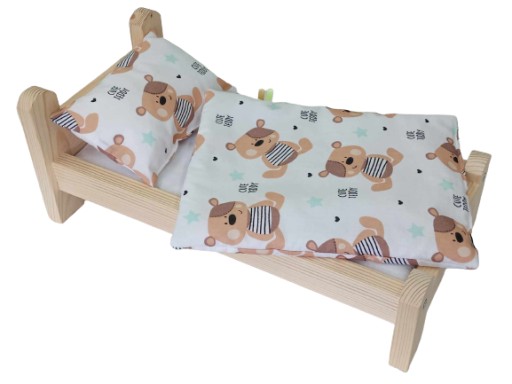 ŁÓŻECZKO DREWNIANE Z KOMPLETEM POŚCIELI(3 elementy)