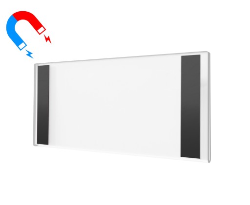 Kieszeń, tabliczka wisząca na plakat lub opis. Format: DL Poziom z podklejoną taśmą magnetyczną