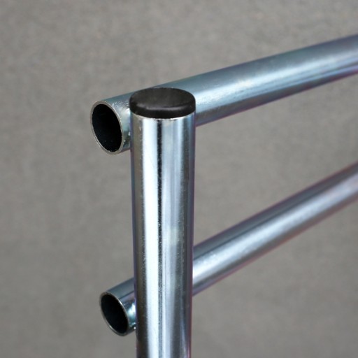 Stojak wyposażony w zaślepki na rurach podstawy.