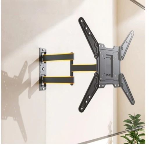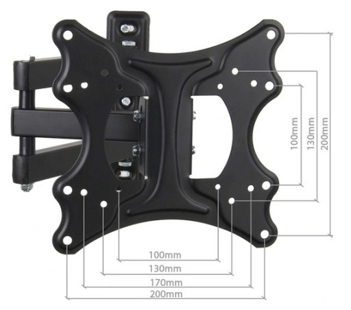 Metalowy, mocny uchwyt naścienny do telewizorów w rozmiarze 26” do 70”. Łatwy w montażu. Zgodny ze standardem VESA 75x75 – 400x400. Posiada w zestawie małą poziomicę ułatwiająca wypoziomowanie uchwytu. Uchwyt posiada możliwość regulacji nachylenia, regulację kąta odchylenia w poziomie oraz regulację odległości telewizora od ściany.