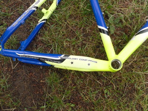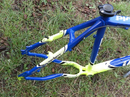 Rama używana w dobrym stanie jak na zdjęciach , ma lekkie otarcia od opony i parę odprysków od kamieni.