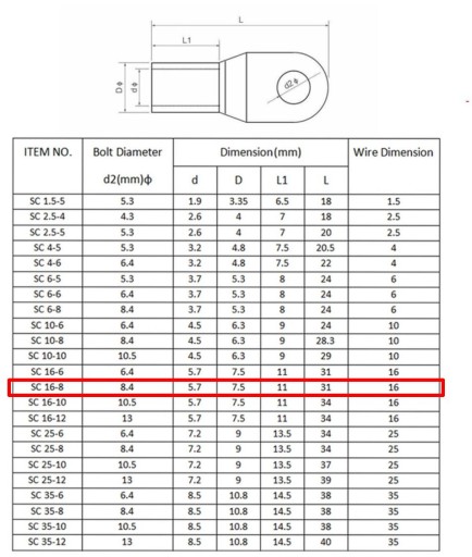 KONEKTOR miedziany oczkowy SC16-8 M8