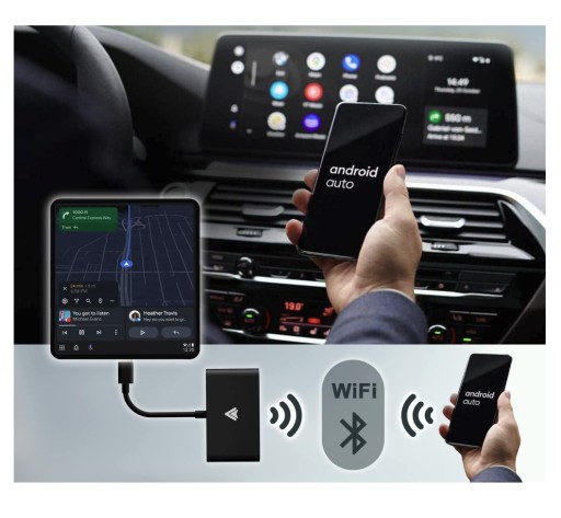 Zapomnij o konieczności każdorazowego podłączania telefonu do kabla. Dzięki adapterowi po uruchomieniu systemu multimedialnego twojego auta, w ciągu minuty zostanie włączony bezprzewodowy Android Auto.