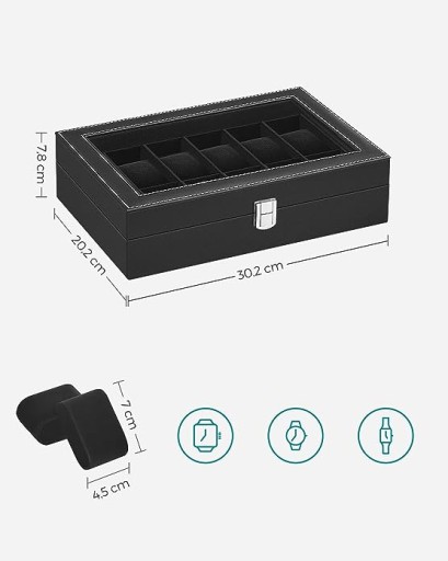⭐️SONGMICS wie, że estetyka ma znaczenie. Dlatego to pudełko na zegarek zostało wyposażone w szklaną pokrywę, która umożliwia podziwianie Twoich zegarków bez konieczności otwierania etui.