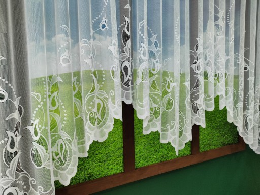 Zdjęcie przedstawia firanę 400x170, firana umarszczona do 220 cm.