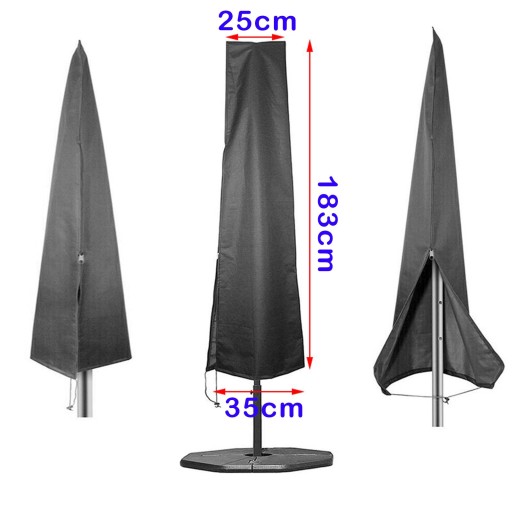 Wytrzymały materiał - Pokrowiec na parasol wykonany jest z tkaniny 210D Oxford powlekanej PCV, dzięki czemu jego powierzchnia jest nie tylko grubsza i niezawodna, ale także odporna na zachlapanie wodą. Chroni parasol przed wszelkimi uszkodzeniami spowodowanymi przez deszcz, śnieg i szkodliwe jak dzięki doskonałej wodoodporności, odporności na warunki pogodowe i kurz. odporna konstrukcja zapewnia wystarczającą wytrzymałość na działanie promieni słonecznych