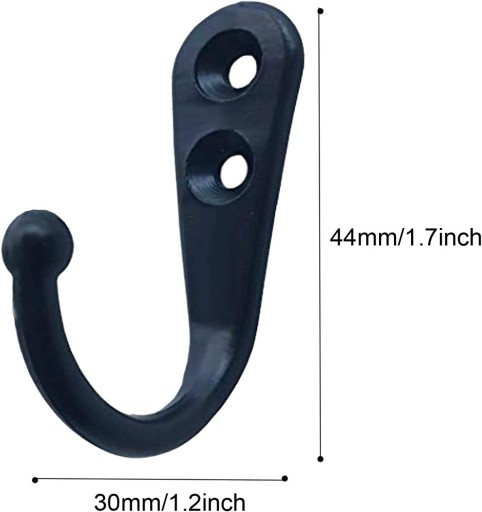 Liczba sztuk 30 sztuk czarnych pojedynczych wieszaków na ubrania ze rubami 44 x 30 mm Wytrzymay materia hak na paszcz wykonany jest ze stopu cynku a ruba jest wykonana z elaza jest twarda i wytrzymaa nie pka i jest odporna na rdz i erozj. Zaleca si monta na solidnym drewnie lub powierzchni drewnianej. Maksymalne obcienie 15 kg. Te haki s bardzo atwe w montau. Haczyk jest wzmocniony 2 rubami dziki czemu mona dobrze wspópracowa aby zachowa swoje rzeczy. Nadaje si do sypialni azienki pokoju zabaw dla dzieci sypialni biura domowego gabinetu ogrodu zimowego pomieszczeń uniwersalnych korytarza werandy garau itd.