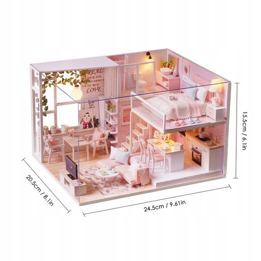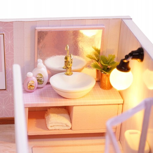 DIY miniaturowy różowy domek dla lalek z dość realistycznymi meblami, artykułami gospodarstwa domowego, dekoracjami domu, sprzętem elektrycznym itp.