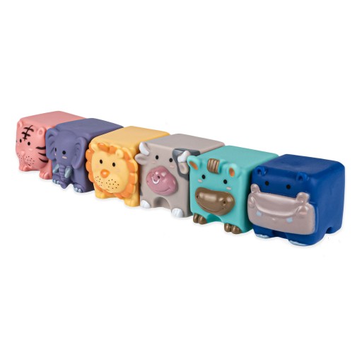 W zestawie znajdziesz klocki o kształtach zwierzątek takich jak słonik, krówka, hipopotam, byczek, tygrysek oraz lew. Figurki są wypukłe tworząc efekt 3D. Ich kolory oraz sympatyczne pyszczki z pewnością przyciągną uwagę dzieci.