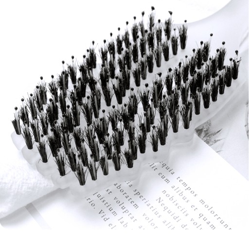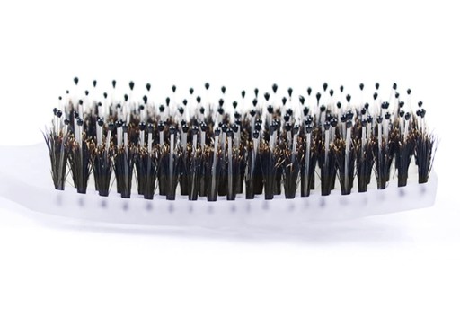 Każda z igiełek jest osadzona w kępce naturalnego włosia z dzika, która w nieinwazyjny, ale skuteczny sposób rozczesuje włosy.