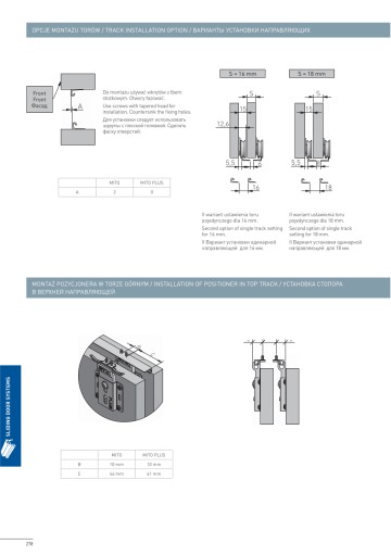 System Mito cechuje się prostotą wykonania oraz montażu. Okucia mogą być zastosowane z płytami meblowymi o grubości od 16mm, a maksymalna waga skrzydła to aż 50kg! Tory wykonane są z wysokiej jakości aluminium anodowanego.