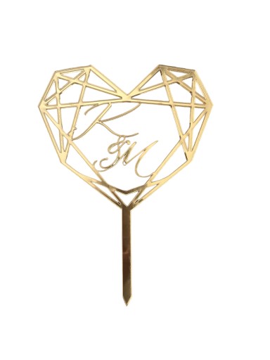TOPPER INICJAŁY SERCE GEOMETRYCZNE ZLOTE LUSTRO