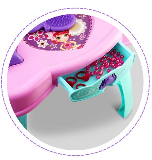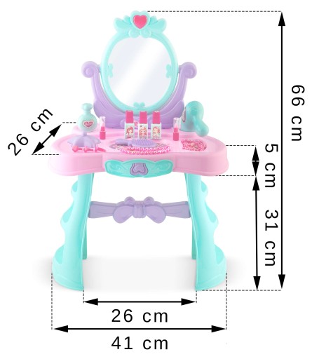 Ruchome elementy akcesoriów toaletowych pozwalają stworzyć wrażenie autentyczności, dzięki któremu każda dziewczynka może poczuć się jak dorosła dama. Własna toaletka może stać się na długo jedną z jej ulubionych zabawek.