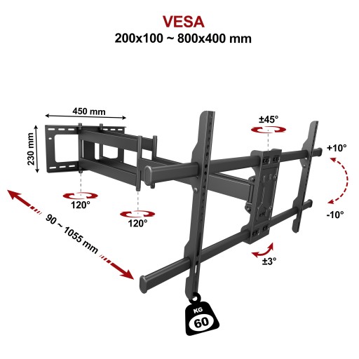 - regulacja odległości od ściany: 90 ~ 1055 mm!