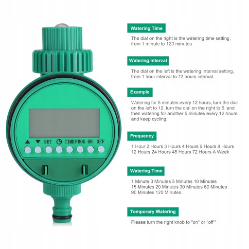 Przyjazny dla użytkownika: maksymalnie 16 grup czasu nawadniania można ustawić dziennie; różne programy dla twoich specjalnych wymagań: pojedynczy i wieloprogramowy, regularny i cykliczny, program jednodniowy lub kilkudniowy.