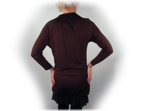 Marszczenia wokół szyi pieknie rozlewają się w dół sukienki / tuniki.