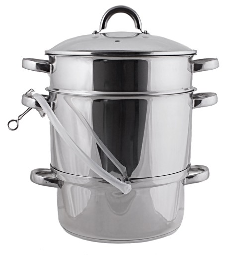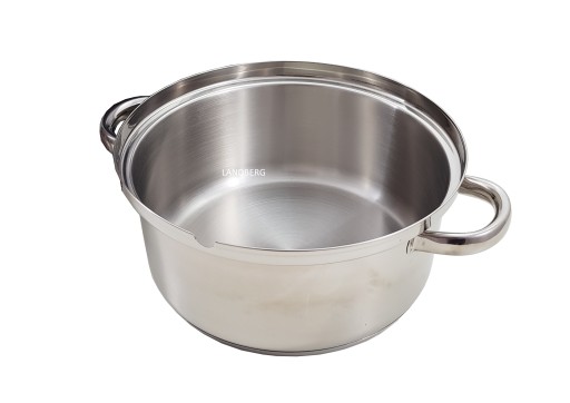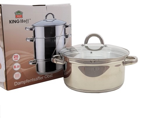 Pokrywa ze szkła hartowanego z otworem wentylacyjnym. Uchwyty odporne na nagrzewanie. Do delikatnego ekstrakcji soku ze świeżych warzyw i owoców. Bezpieczna w zmywarkach. Średnica: 26 cm. Pojemność: 8,0 l.