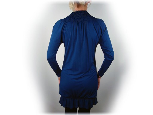 Marszczenia wokół szyi pieknie rozlewają się w dół sukienki / tuniki.
