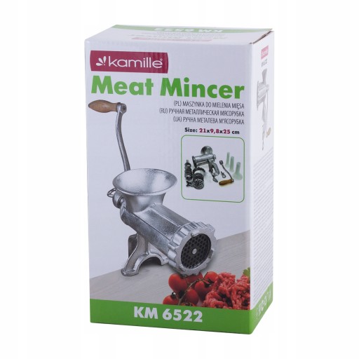 Maszynka do mielenia mięsa Kamille doskonale sprawdzi się w kuchni także do rozdrabniania suchego pieczywa na bułkę tartą lub przygotowywania farszu na pierogi. Maszynka obsługiwana jest ręcznie, więc sam dostosujesz tempo pracy w zależności od swoich możliwości i rodzaju rozdrabnianych produktów. Dzięki mocowaniu do brzegu blatu maszynka solidnie się trzyma i nie przesuwa w trakcie użytkowania. Bardzo pomocne akcesorium w Twojej kuchni.