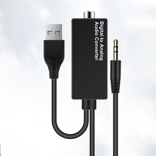 Konwerter DAC: Konwertuje koncentryczne cyfrowe sygnały audio na analogowe gniazdo słuchawkowe 3,5 mm, dostępne do podłączenia do urządzenia zewnętrznego, takiego jak wzmacniacz, za pomocą standardowych kabli RCA