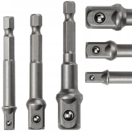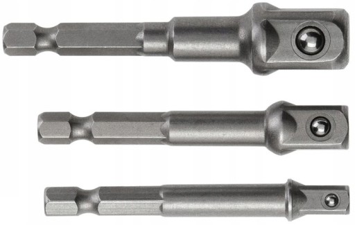Komplet składa się z 3 sztuk nasadek w różnych, popularnych i często stosowanych rozmiarach, a mianowicie 1/4", 3/8" oraz 1/2". Ilość elementów umożliwia praktyczne wykorzystanie zestawu i zastosowanie go do wielu prac czy napraw. Elementy zestawu wykonane są ze stali narzędziowej, która zapewnia ich wysoką wytrzymałość i długą żywotność. Świetnie sprawdzają się w wiertarko-wkrętarkach sieciowych i akumulatorowych.