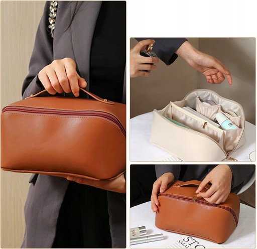 【Kosmetyczka o dużej pojemności】 Duża pojemność podróżnej torby kosmetycznej ma wiele przegródek i dwuwarstwową konstrukcję, a bardzo duża pojemność może pomieścić cały twój makijaż, z otworami na pędzle i przegrodami, dzięki czemu nie musisz się martwić o wycieki podczas podróży. W otwór kosmetyczki włożony jest stalowy drut, dzięki czemu jest ona bardziej trójwymiarowa i wygodna w trzymaniu, co świetnie sprawdza się w podróży.