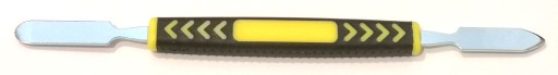 Ten dwustronny uniwersalny otwierak wykonany z metalu to niezbędne narzędzie dla każdego, kto zajmuje się naprawą urządzeń elektronicznych. Plastikowa rękojeść zatopiona w gumie zapewnia pewny chwyt podczas pracy, co pozwala na precyzyjne i bezpieczne oddzielenie wyświetlaczy i obudów.