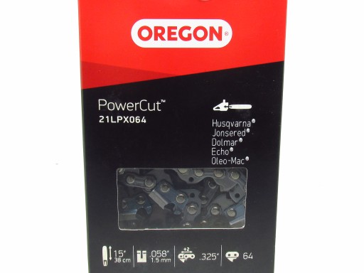 Wysokowydajny łańcuch tnący OREGON PowerCut doceniony przez profesjonalnych użytkowników pilarek. Liczba ognów: 64 szt. Szerokość rowka: 1,5mm. Podziałka: .325".