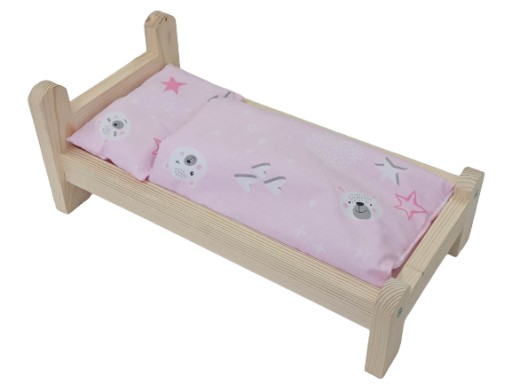 ДЕРЕВЯННАЯ КРОВАТЬ ДЛЯ КУКЛЫ + ПОСТЕЛЬНОЕ ПРИНАДЛЕЖЕНИЕ