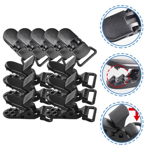 Klipsy mogą być używane w markizach, przyczepach kempingowych, plandekach, laskach, pokrowcach na łodzie, odpowiednie do biwakowania na zewnątrz, żeglowania lub pikników.