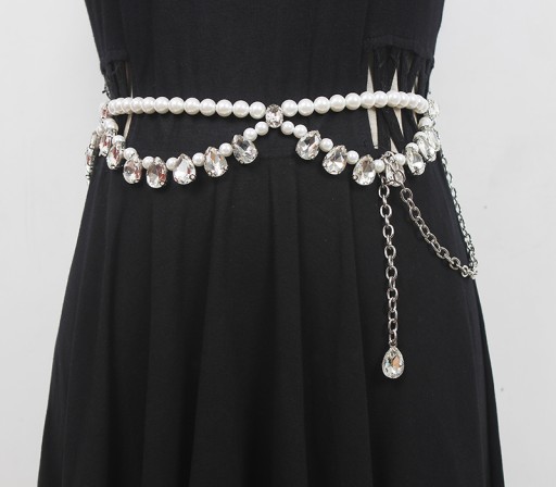 Crystal pearl size: waist chain length 110cm wide 0.9cm