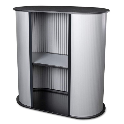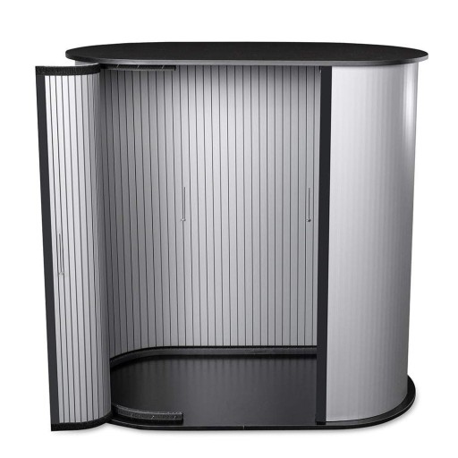 Ścianki tego systemu zostały wykonane z PVC komorowego, które montuje się do blatu i podstawy za pomocą rzepów. Dzięki tak prostej konstrukcji złożenie i rozłożenie trybunki nie wymaga użycia narzędzi i zajmuje dosłownie chwilę. Drewniana podstawa i mocny, drewniany blat gwarantują wysoką jakość, stabilność oraz długi czas użytkowania tego produktu.