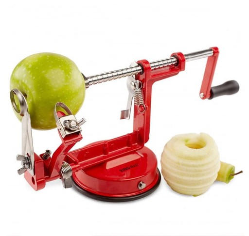 Łatwa w obsłudze obieraczka na korbkę z mocowaniem na przyssawkę. Urządzenie to świetnie poradzi sobie nie tylko z jabłkami, ale także z innymi owocami, np. gruszkami. Można je także wykorzystać do obierania warzyw, m.in. rzodkiewek, ogórków, ziemniaków.