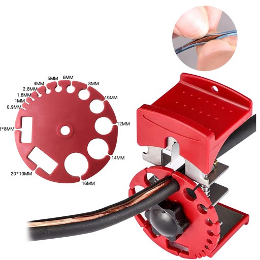 - 【Regulowana głębokość】Głębokość cięcia może być kontrolowana poprzez regulację wysokości śruby, aby spełnić różne potrzeby cięcia. Dostępna w 14 różnych rozmiarach/kształtach Maszyna do ściągania izolacji jest odpowiednia dla 24 AWG (3/64 cala) - 0 AWG (7/16") drutu miedzianego, drutu aluminiowego, drutu jednożyłowego, drutu z twardej skóry, itp.