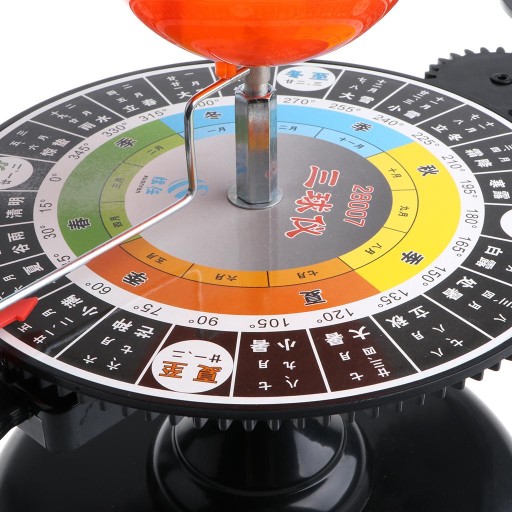 Ten napędzany przekładnią model można wielokrotnie przesuwać, aby zademonstrować światło dzienne, noc, pory roku, słoneczne, księżycowe i fazy księżyca