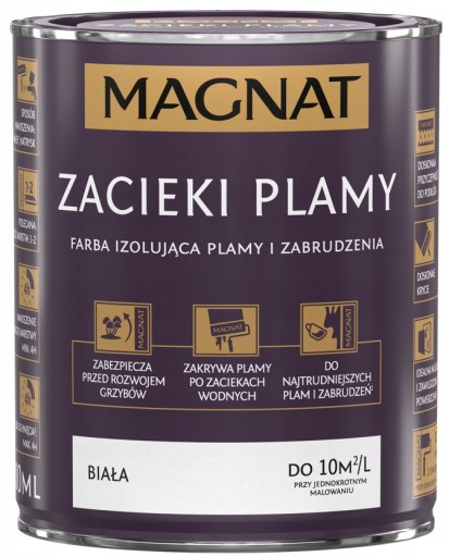 MAGNAT ZACIEKI i PLAMY to farba do podkładowego malowania najtrudniejszych plam i zabrudzeń1 oraz renowacji ścian i sufitów.