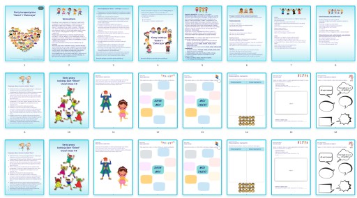 - 19 kart pracy cześć dotycząca kart „Dzieci”: praca z emocjami, relacjami, komunikacją,
