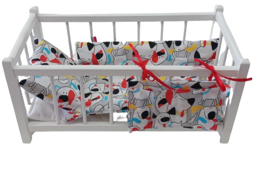 BIAŁE DREWNIANE ŁÓŻECZKO, wykonane z drewna bukowego,co zdecydowanie zwiększa trwałość i zapewnia wygląd zbliżony do ich dużego odpowiednika. W kołderkę wszyta owata puszysta i kolorowe ozdobne tasiemki.ORGANIZER można wiązać na dowolny bok łóżeczka.Kolorowe tasiemki są wszywane losowo, pod kolor bawełny. Łóżeczko wysyłane jest w całości - nie trzeba nic skręcać ani składać.