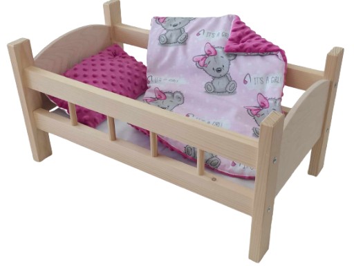 ŁÓŻECZKO DREWNIANE Z KOMPLETEM POŚCIELI(3 elementy)