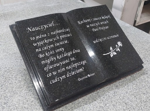Ksiązka wykonana z granitu szwed doskonale pasuje do każego nagrobka oraz doskonale nadaje sie do wygawerowania podobizny osoby zmarłej.