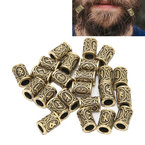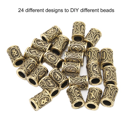 24шт бусины для бороды викингов, бронза, 24 узора, сделай сам