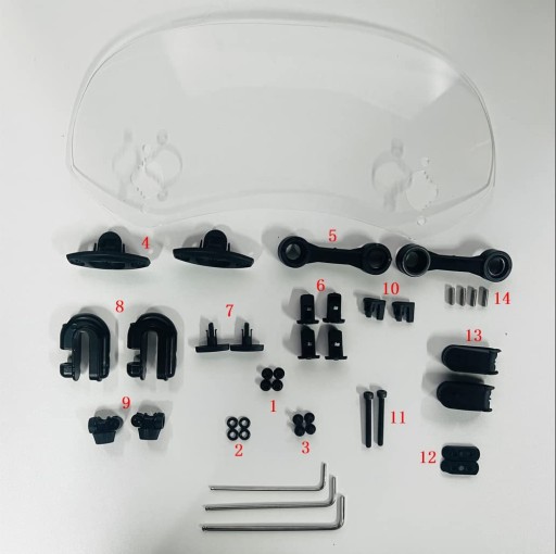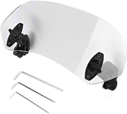 Regulowana przednia szyba, mocowana na górze oryginalnej przedniej szyby, pasująca do prawie każdego motocykla z przednią szybą.