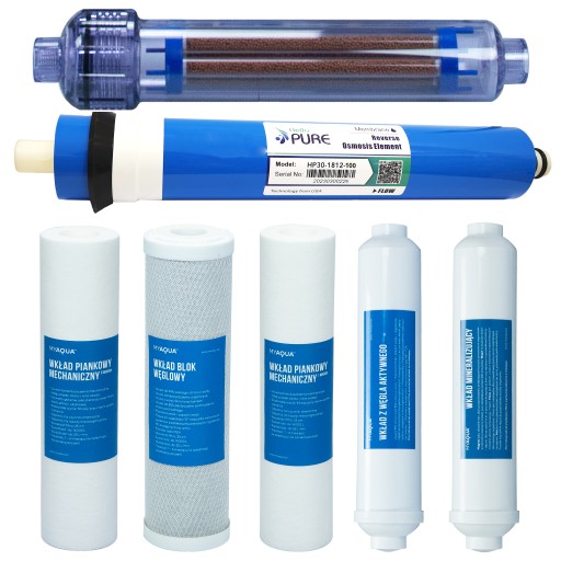 Komplet wkładów do OSMOZY RO7 z JONIZATOREM + membrana osmotyczna HELLO PURE 100 GPD ⭐️⭐️⭐️⭐️⭐