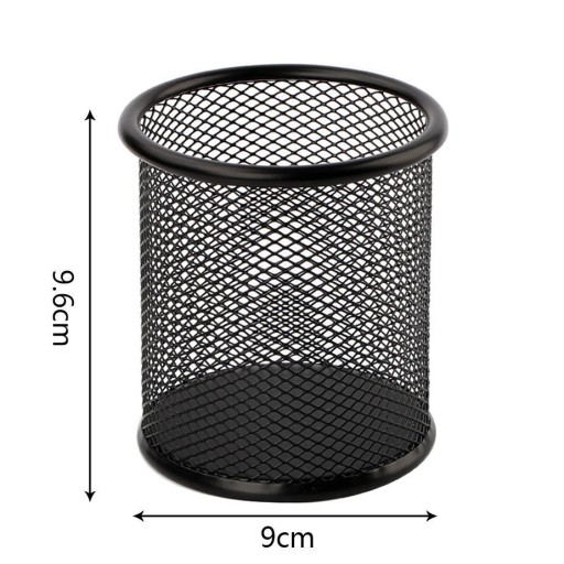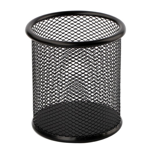 Metalowy kubek na biurko służący do przechowywania artykułów piśmiennych. Ułatwia organizację długopisów, ołówków, nożyczek i innych artykułów w miejscu pracy.