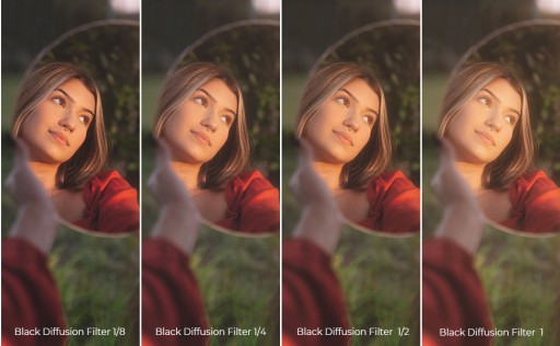 Dodatkowo dzięki filtrom Black Diffusion wszelkie niedoskonałości fotografowanych i filmowanych obiektów, szczególnie w fotografii portretowej, takie jak: odcienie skóry, zmarszczki, pory skórne itp. stają się zmiękczone i wygładzone, zanikają. Dookoła źródeł światła natomiast powstaje klasyczna, delikatnie wyglądająca poświata.