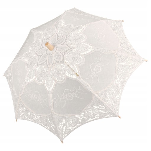 2. Powierzchnia parasola wykonana jest z wysokiej jakości koronki, a uchwyt wykonana jest z eukaliptusa.