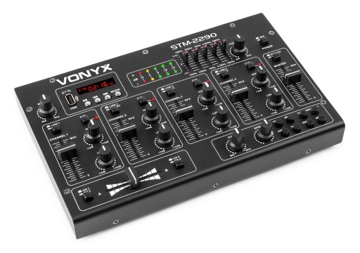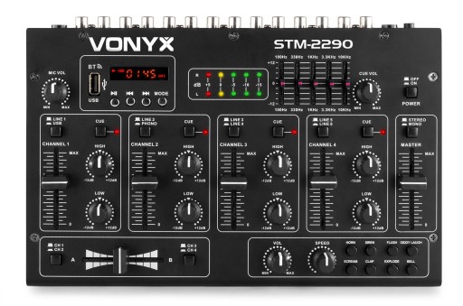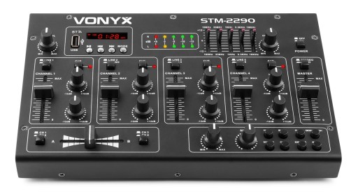 Ośmiokanałowy mikser z wbudowanym modułem Bluetooth producenta Skytec. Urządzenie zostało wyposażone w port USB oraz czytnik kart SD, który umożliwia łatwą obsługę plików MP3. Wbudowany został także 5-punktowy korektor graficzny oraz rozmaite efekty. Idealnie zastosowanie dla mobilnego DJa.